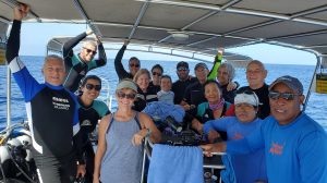 Group photo taken at the end of our first week on the Sabrina (Lee, Robby, Becky, Holly, Nick, Merrilee, Britney, Christy, Josh, Bill, Ann, Janet, Lucas, Bob & Rupert)
