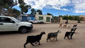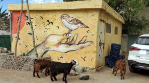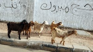Goats belonging to the local Bedouin families search the streets of Dahab looking for free food