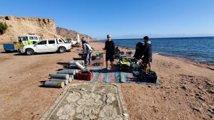 The rocky coastline of Dahab where SCUBA diving is shore based