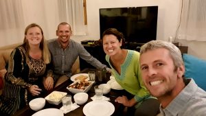Having dinner at Leanne and Ryan's place; Red C Villas