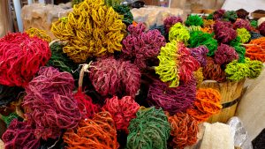 Colored dried seaweed shaped into decorative balls; Sharm el-Sheikh