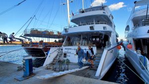 Divemasters Samuel and Alaa getting off the Snefro Spirit after our 4 day liveaboard