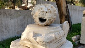 Carved lion head at the Catacombs of Kom El Shoqafa