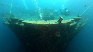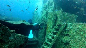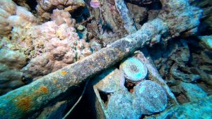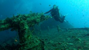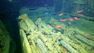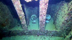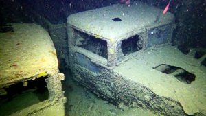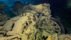 Truck loaded with motorcycles located in one of the cargo holds of the SS Thislegorm wreck