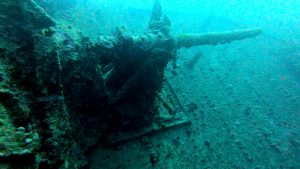 Becky at the anti-aircraft gun on the stern of the SS Thislegorm