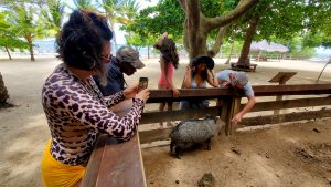 Saying hello to a peccary; Maya Key