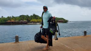 Luke carrying his dive gear to the boat
