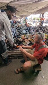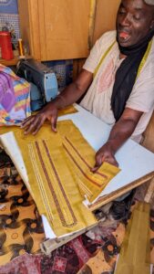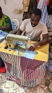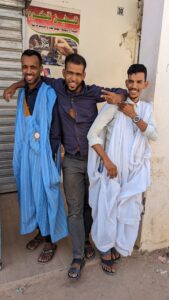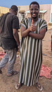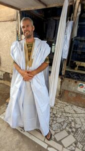 Robby modeling a boubou (traditional outfit for men to wear in Mauritania) in Nouadhibou