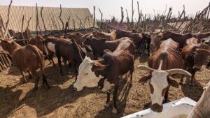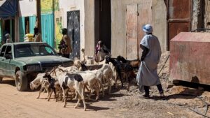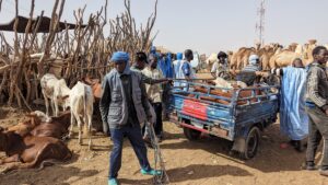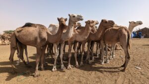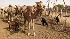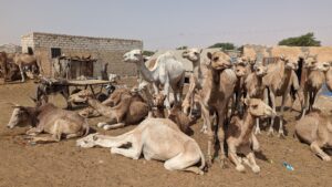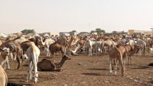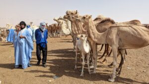 Camels, goats and cows are for sale at a massive open air camel market on the outskirts of Nouakchott