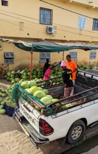Loading watermelon on the back of a pickup truck; Saint Louis