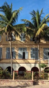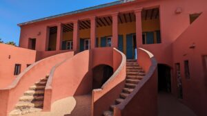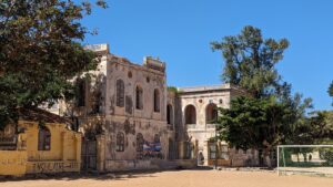 The Alliance Francaise in Ziguinchor was famous for its unique, colorful architecture but was sadly destroyed in a fire in June. All that remains is its colorful gate