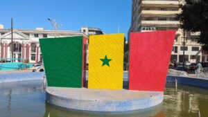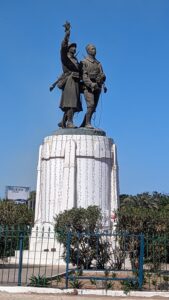Place des Tirailleurs in Dakar. This statue of Dupont and Demba is dedicated to the Senegalese soldiers who participated in the construction of Dakar's railway station
