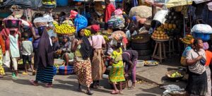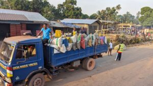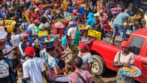 A women's parade at the border crossing between Sierra Leone and Liberia