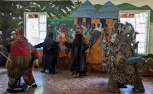 Traditional masquerade costumes on display at the National Museum in Freetown