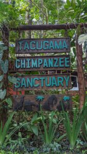 Entrance to Tacugama Chimpanzee Sanctuary, home to over 100 rescued chimpanzees on the outskirts of Freetown