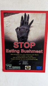 Poster imploring people to stop eating bushmeat, which is now illegal following the 2013 to 2016 Ebola outbreak