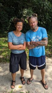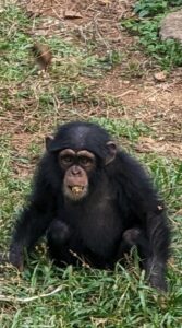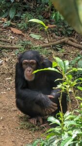 Emmanuel teaching us vocalizations that the chimps use to indicate happiness, excitement, anger, hunger and temper tantrums