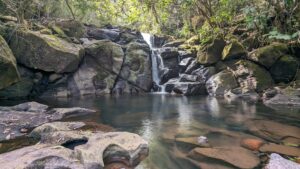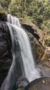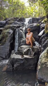 Becky at a waterfall near Tacugama Chimpanzee Sanctuary