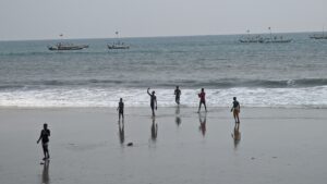 Boys doing push ups on Kokrobite Beach