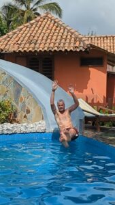Dan and Becky relaxing in the kiddie pool at Axim Beach Resort