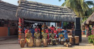 Beachfront bungalows at Axim Beach Resort