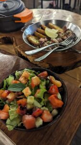 Fried squid, potatoes and a delicious salad for dinner at MadMarket Restaurant