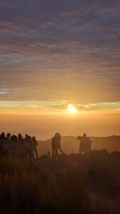 A crowd gathers at Pico do Arieiro Mountain for sunrise. Get there early because parking is limited!