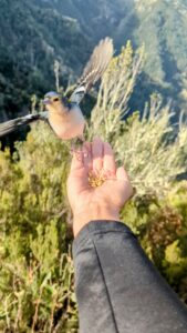 Becky feeding a friendly bird at Vereda dos Balcoes