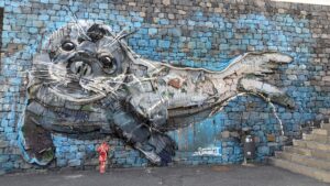 Monk seal artwork by one of our favorite Portuguese artists, Bordalo II, near the harbor in Camara de Lobos
