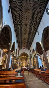 The ceiling of the Cathedral of Funchal gets lit up daily at 11 am. Check out the detail of the Mudéjar ceiling!