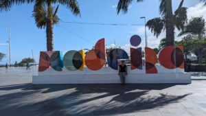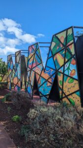 Massive wall mural showing that travel is educational for children; Camara de Lobos
