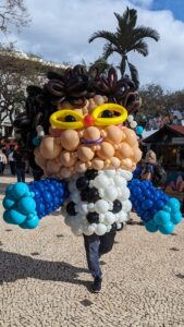 Balloon man walking downtown Funchal the day before carnival kicks off