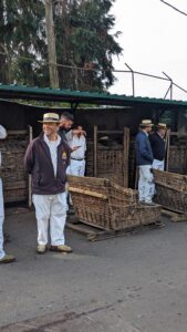 Tourists enjoying their wicker basket rides down a back road in Monte Village