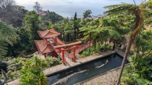A Japanese shrine and torii gate at Monte Palace Tropical Garden