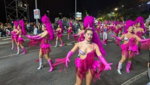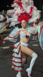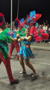 Despite the chilly temperature, the carnival dancers are not feeling the cold