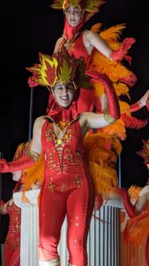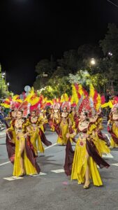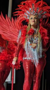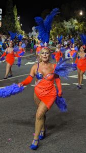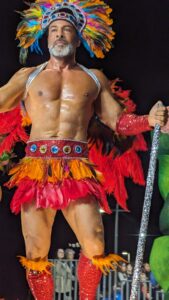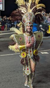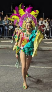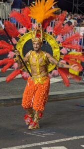 There were far more female dancers than males in the carnival parade so the male participants really stood out