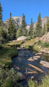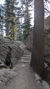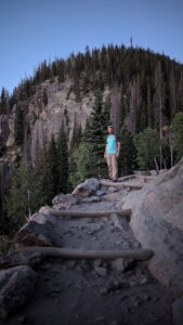 Robby hiking up a path leading to Lake Haiyaha at Rocky Mountain National Park