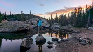 Robby enjoying Lake Haiyaha at sunrise