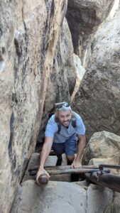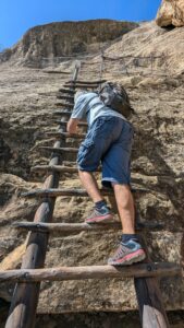 Robby climbing a ladder leading out of Cliff Palace