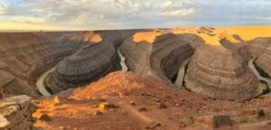 Goosenecks State Park features a unique geological phenomenon, a series of tight loops or “goosenecks” made by the San Juan River