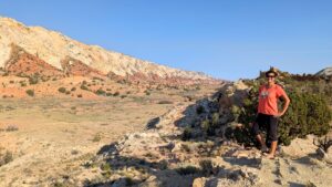 Becky admiring the Waterpocket Fold, a buckle in the earth's surface, almost 100 miles long