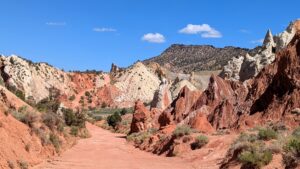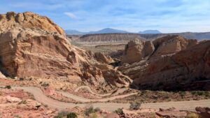 The Burr Trail road is a scenic backway that spans 66 miles and winds through dramatic portions of the Grand Staircase Escalante National Monument