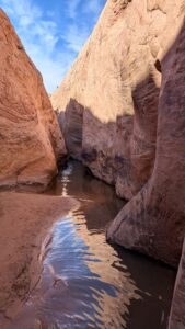We expected the water to be at knee level at Zebra Slot Canyon and were shocked to discover that due to recent rains, it was up to chest level in order to venture in!