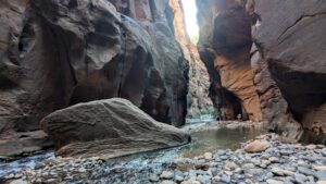Wall Street is the most famous section of the Narrows hike and will require hiking at least 3 miles to reach it