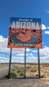 Robby at a Welcome to New Mexico sign
