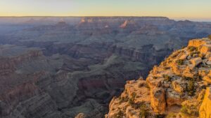 The Grand Canyon gets lit up from the sun's first rays at Yaki Point