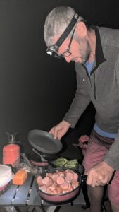 Robby preparing dinner for us at Long Jim Loop Camping