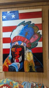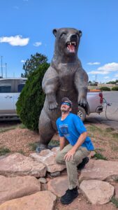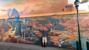 Robby posing next to a cool mural in Flagstaff
