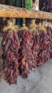 Hanging dried Mexican style hot chili peppers