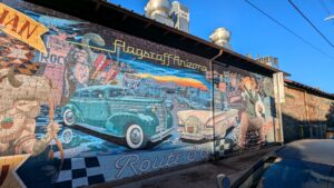 Route 66 wall mural in Flagstaff